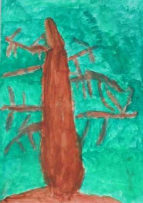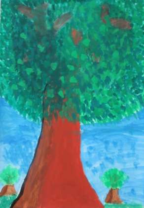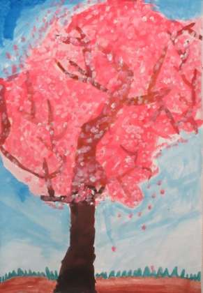 4年生の題材「木々を見つめて」では子どもたちが地域で見かける木から受ける生命感や躍動感などをアクリル絵の具の使い方を工夫しながら思い思いに表しました。図工室前の廊下壁面に展示しているので学校公開の際にご覧ください。