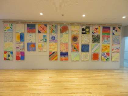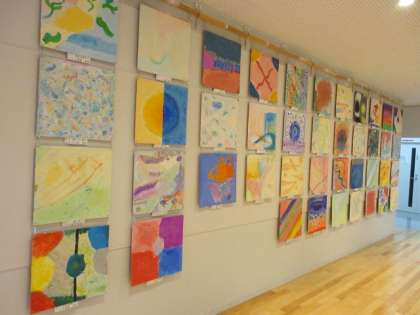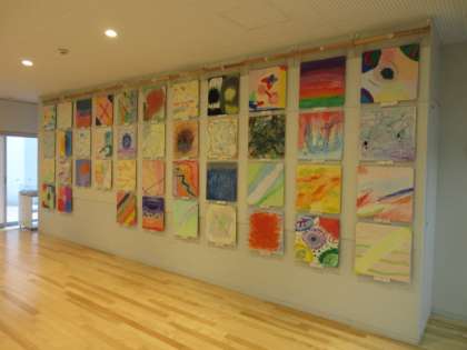 6年生の題材「見えない絵」では、音・香り・感情など実際に目に見えないものを自分のイメージを広げて表現しています。アクリル絵の具を液体粘土で練って画面につけながらダイナミックに感情表現しました。1階ギャラリーに展示していますので、学校公開でお越しの際に子供たちの新鮮な感性に触れてみてください。
