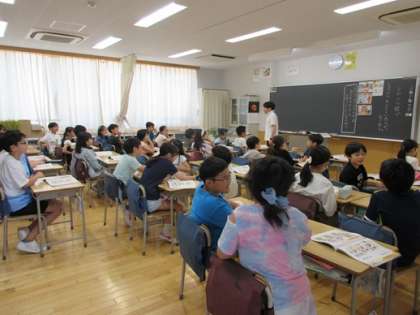 6月8日、学校公開期間中、道徳授業地区公開講座を行いました。4年1組は題材「とびらの前で」について特別の教科道徳で取り上げ、親切、おもいやりについて学習しました。4年2組は題材「いのりの手」について特別の教科道徳で取り上げ、友情、信頼について学習しました。