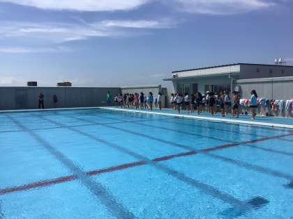 プール開きの後は、1回目の水泳学習を行いました。気候は気持ち良かったものの、水温はまだ冷たかったですが、子供たちは楽しそうに泳いでいました。
