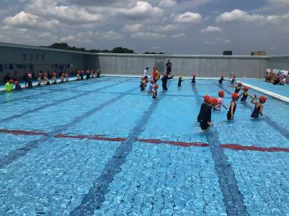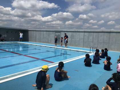 初めての水泳の学習が、始まりました!プール開きでは、緊張しながらも代表児童が立派にめあてを発表しました!!最後は宝探しを楽しみました!!!!