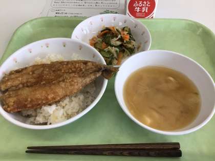 入梅の頃に採れる「真いわし」は1年のうちで最も脂がのっていておいしいと言われています。そのいわしを使って今日は蒲焼丼にしました。油でカラッと揚げ、甘いしょうゆだれでいただきました。みんな、よく食べてくれました。