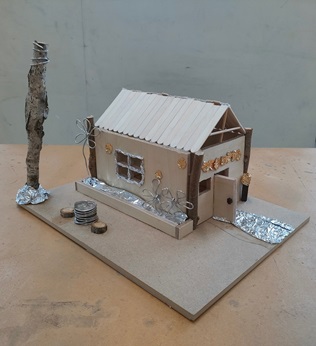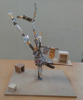 6年生が図工授業で制作した題材「木と金属でチャレンジ」を紹介します。木材(木切れ、自然木)と金属(アルミホイル、アルミ缶、針金など)という異質な素材を組み合わせて出来上がる形をイメージして取り組みました。子どもたちは様々な発想でチャレンジして見応えのある作品を仕上げました。2学期の学校公開で展示するつもりですが今回は学校ホームページで数々の力作をご覧ください。