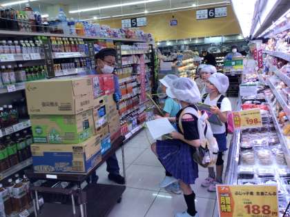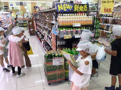 社会科「お店ではたらく人」の学習で、サミット梅ヶ丘店に見学に行きました。たくさんのお客さんに来てもらうために、お客さんが利用しやすくなるために、お店にはいろいろな工夫がありました。普段入れないところも見学でき、子ども達は興味津々に質問したり、メモを取ったりしていました。