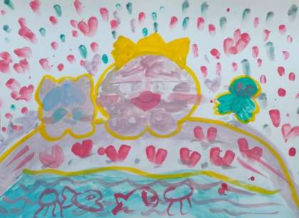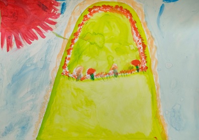 2年生が図工授業で制作した題材「えのぐじま」の作品を紹介します。水彩絵の具の扱いに慣れるため、イメージを広げて自由に形を描き、思い切り筆を動かしながら絵具でできた島を表しました。学校ホームページでの掲載のみとなりますがご覧ください。