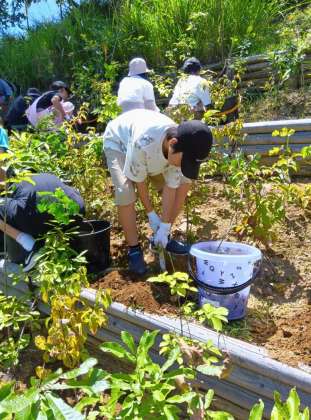 100万本を目指して植樹をしています。これまで30万本の植樹が行われたそうです。今日、そこに一人一人が植えた一本が加わりました。