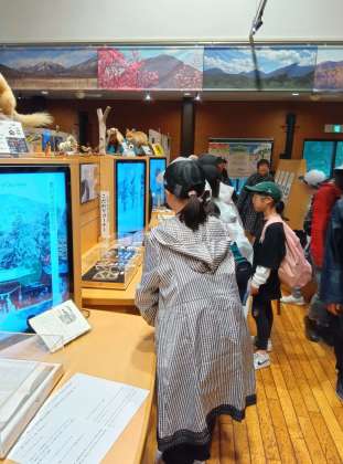 今日の最初は、源泉の見学です。手をお湯につけられないほど熱いお湯が涌いています。その後、ビジターセンターに立ち寄り湯の湖畔のハイキングに出発です。