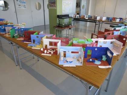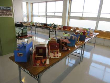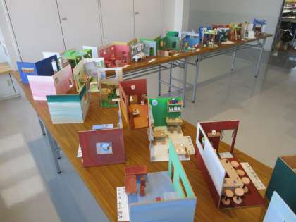 5年生が図工授業で制作した題材「私のカフェ」を5年生のフリースペースに展示しました。子どもたちは居心地のいいカフェをイメージしてデザインし、様々な技を使いながら表現しました。保護者・地域の皆様は10/7〜10/9の学校公開でご覧いただけます。