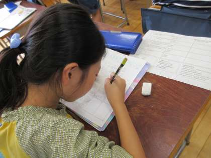 9月25日、本年度の校内研究主題「自立した学び手の育成」に基づき3年生対象に研究授業を行いました。教科は算数で少人数の2クラスを対象として「大きい数のしくみ」の単元の授業研究を行いました。子どもたちは数の構成を多面的にとらえ、「16,000」という数の表し方を探究的に学びました。研究協議会では授業についての意見交換などを行い、全教員が授業実践について学びを深めました。