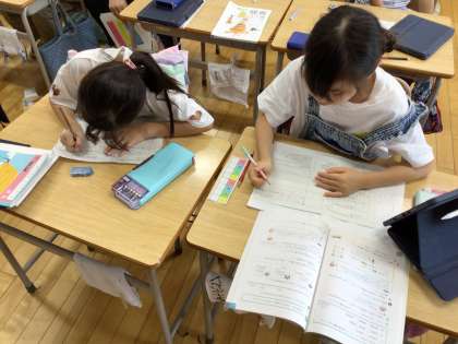 9月25日(水)3年生算数の授業で校内研究を行いました。自分でじっくり考える子、友達と相談しながら学習を進める子、先生と一緒に考える子、それぞれ自分のスタイルに合った学習の進め方を選択していました。色々な考えを共有する中で、数の見方を豊かにしました。