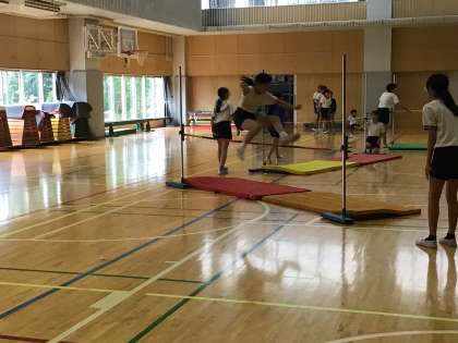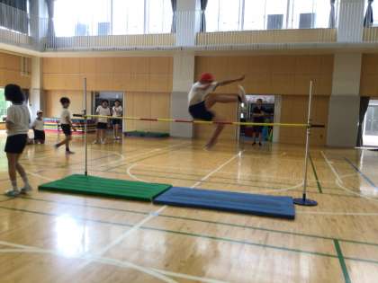 10月8日(火)の陸上記録会に向けて、走り高跳びの学習をしています。リズミカルな助走や力強い踏切などのポイントに気を付けて、1cmでも高く跳ぼうと頑張っています。ご声援をよろしくお願いいたします。