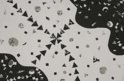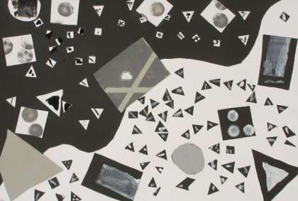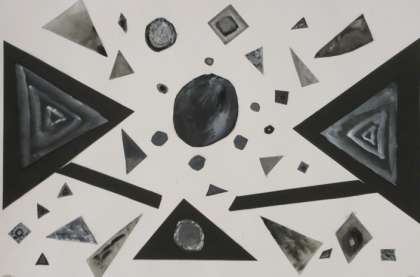 5年生が図工授業で制作した題材「モノクロームの世界」を1階ギャラリーに展示しました。デザイン的な要素を生かしながら画面の構成力を養うため、幾何形体のみでイメージを広げました。着色は、白・黒・灰色のみのモノトーンを使い、今までの図工授業でつくってきた作品とは趣の異なる作品に仕上がりました。子どもたちがようやく仕上げた難しい題材の作品です。保護者、地域の皆様、ご来校の際にはぜひご覧になってください。