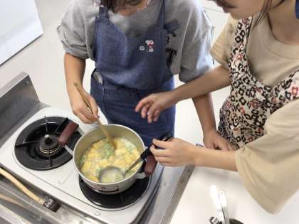 1学期のゆで野菜に続き、2学期はごはんとみそ汁を調理しました。