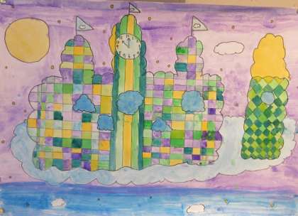 4年生が図工授業で制作した題材「夢のお城」を1階ギャラリーに展示しました。子どもたちはイメージを広げ、自分だけの夢のお城を構想してアクリル絵の具で描きました。一人一人が思い描いた夢のお城には味わい深い風格があります。保護者・地域の皆様、ご来校の際にはぜひご覧になってください。