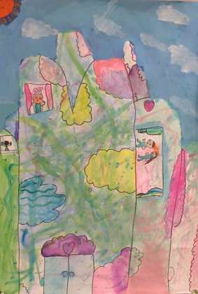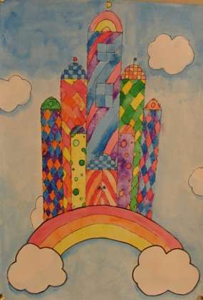 4年生が図工授業で制作した題材「夢のお城」を1階ギャラリーに展示しました。子どもたちはイメージを広げ、自分だけの夢のお城を構想してアクリル絵の具で描きました。一人一人が思い描いた夢のお城には味わい深い風格があります。保護者・地域の皆様、ご来校の際にはぜひご覧になってください。