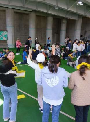 昼食が終わり、両校の親睦を深めるために、合同レクリエーションを行いました。短い時間でしたが、少し仲良くなることができました。みんな元気です。
