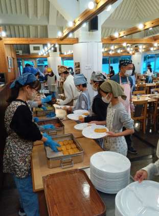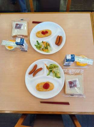 3日目の朝食です。食事係は、配膳するときのお皿の向きや並べ方など、自分で考えて配膳していました。みんな元気です。