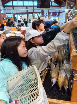 お土産には、多くの子どもたちが川場村の特産品を選んでいました。家に同じ野菜があるかもしれないと迷いながら選んでいました。これから帰路につきます。