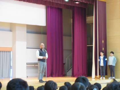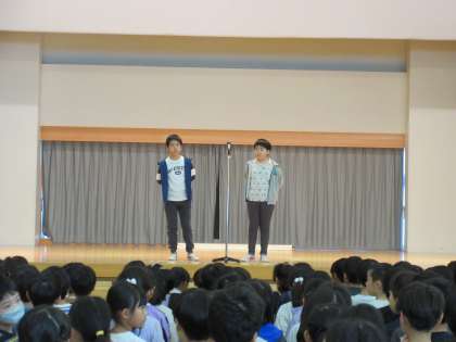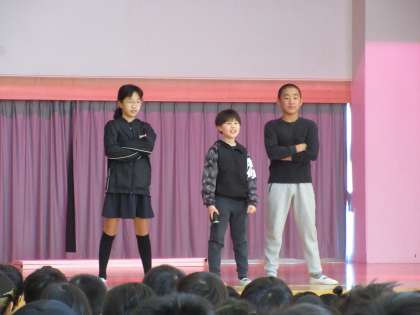 11月1日、今年度64年目を迎える城山小学校の開校記念日を祝うため運営委員会の子どもたちが司会・進行を務めて開校記念集会を行いました。本校の歴史にちなんだ寸劇やクイズなどの内容で全校児童が楽しみながら学校の誕生日を祝うことができました。
