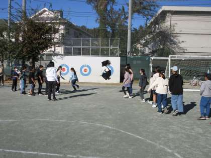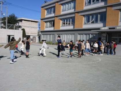11月7日、朝の活動時間にわくスポを行い、子どもたちは先月に引き続き長なわに取り組みました。季節が進み肌寒い朝でしたが、どのクラスも自分たちの記録を伸ばすために協力し合って頑張りました。