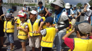 本校では、国士舘大学の北川教授のご指導のもとで「川で遊び川に学ぶ親子体験学習」を夏休み中に開催しています。サマーワークショップの番外編として行っています。昨年は、都内を流れる神田川や隅田川をクルーザーで下る川下りでした。第8回目になる今年は、大森海苔のふるさと館を見学した後、船に乗って羽田空港のすぐ隣にある人口砂浜に上陸し、潮干狩り体験をしました。