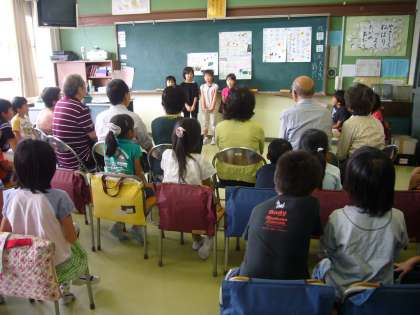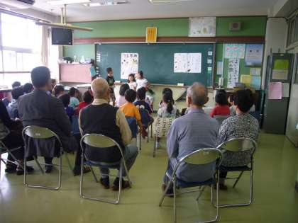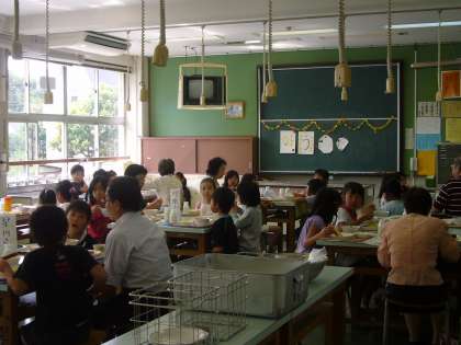 平成24年9月26日(水)に、ふれあい給食を行いました。これは、日ごろお世話になっている地域の方や、2年生の祖父母の方をお招きして、一緒に給食を召し上がっていただく会です。