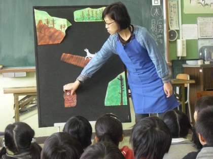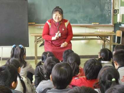 毎月1回、お母さん方によるお話会が行われています。毎回本の選択が季節、学習にぴったりで、子どもたちはとても楽しみにしています。