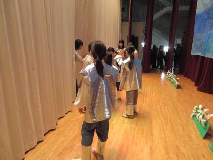 5年生は演目「ぼくのロボット」を練習してきました。少年が大事にしている5体のロボット。ある日、おかしなニュースが飛び込んできて、少年とロボットは旅に出ます。旅先で様々な事件に遭遇します…5年生が力いっぱい作り上げた舞台をぜひご覧ください。