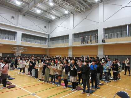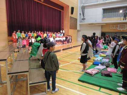 11月15日、学芸会(児童鑑賞日)を開催しました。全校児童が体育館で互いの演目を見合うのは平成28年以来6年ぶりです。オープニングでは全校児童で「学芸会の歌」を元気に歌い、2年生がはじめの言葉をしっかり発表しました。午前中は1〜5年生、午後は6年生の発表です。どの学年の演目も子どもたちは役になりきり精一杯演じていました。各学年の演目の様子については明日ホームページに掲載することにします。