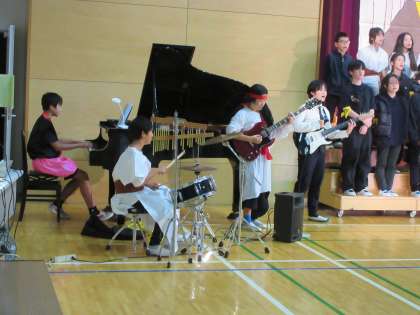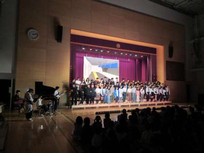 6年生は演目「2100年の青い鳥」」の発表をとおして「本当の平和は互いの心の中にある」ことを学びました。タイムパトロール隊が様々な時代へ青い鳥を探しに行きましたがどの時代にも争いがあり、最後に現代に戻り答えにたどり着くことができました。小学校生活最後の学芸会、子どもたちは精一杯演じきり素晴らしい舞台に仕上げることができました。全員合唱「Tomorrow」ではピアノ、ギター、パーカッションを子どもが伴奏して体育館に美しい歌声を響かせました。