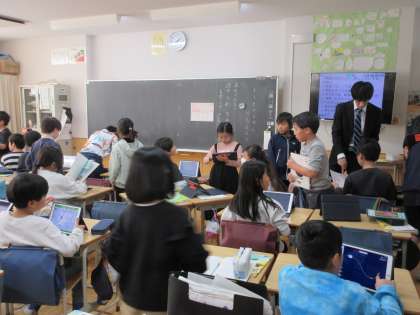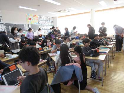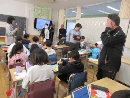 12月11日、本年度の校内研究主題「自立した学び手の育成」に基づき4年2組対象に国語科の研究授業を行いました。「もしものときにそなえよう〜自分の考えや理由と事例を対応させて書こう〜」という単元を取り上げ、社会科「自然災害から人々を守る」の単元と教科横断的に関連させながら災害時の対策について個人やグループで調べました。子どもたちは自分の主張とそれを支える資料の大切さについて考えながら授業に臨み、最後に学習の進捗状況をそれぞれ確認しました。授業後の研究協議会では、子どもたちを自立する学び手に育成するための手立て、本日の授業内容について意見交換をする中で成果と課題を検証し、全教員が授業実践について学びを深めました。