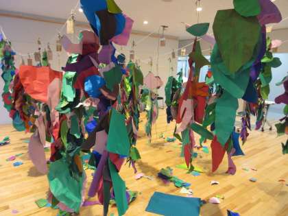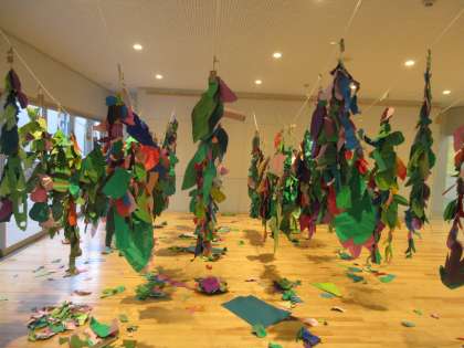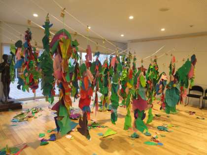 2025年2月27日〜4月13日の日程で開催予定の「緑の惑星 セタビの森の植物たち」のための装飾ができました!4年生が自分で作った色画用紙の葉っぱをつけながら思い思いの蔓状の植物を作りました。会期中、区内10校の子どもたちが作った約1000点の植物が世田谷美術館の円形展示室に飾られます。お時間があればぜひお越しください。