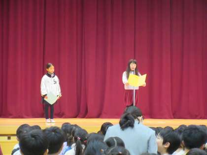 令和7年1月8日、冬休みが終わり3学期が始まりました。冬ばれの空の下、子どもたちは元気に登校しました。始業式では、校長先生の話・2年生代表児童の言葉・校歌斉唱などがありました。式後には転入生の紹介と生活指導担当の先生の話がありました。子どもたちが新年の抱負を胸に3学期の学校生活に取り組むことを願います。