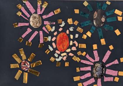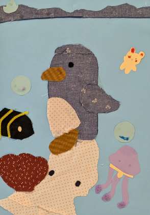 3年生が図工授業で制作した題材「はり絵」を紹介します。子どもたちは自分のねらいに合わせて持ってきた素材を色画用紙に貼りながらコラージュ作品を仕上げました。保護者・地域の皆様、1階ギャラリーに展示していますので来校された際にはぜひご覧になってください。