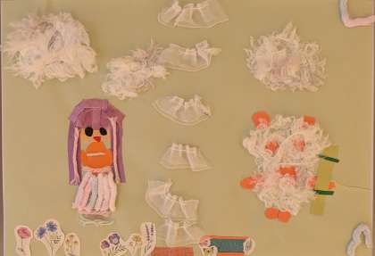3年生が図工授業で制作した題材「はり絵」を紹介します。子どもたちは自分のねらいに合わせて持ってきた素材を色画用紙に貼りながらコラージュ作品を仕上げました。保護者・地域の皆様、1階ギャラリーに展示していますので来校された際にはぜひご覧になってください。