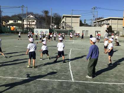 新年を迎えて1回目の体育は、学年合同で行いました。気持ちの良いお天気のもと、校庭で行いました。1つ目は、体を温めるための三角おに!クラスの仲間を助けたり、他のクラスの友達を捕まえたり、他のクラスの友達から逃げたり・・・。体力だけでなく、頭も使います。終わった後は、もう1回やりたい!と声が上がりました。が、2つ目はクラス混合班対抗ドッジボールです!普段関わることのないクラスの友達とも同じチームになり、やや緊張している子もいましたが、大盛り上がりとなりました!