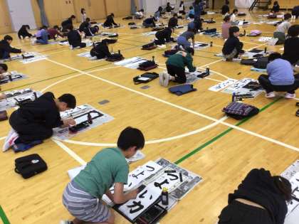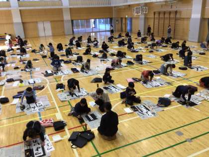 3学期が始まって2日目。この日は体育館で書き初め大会を行いました。教室で行ういつもの書写とは違った雰囲気の中、子ども達は集中して書き初めに取り組んでいました。児童作品は、14日(火)〜20日(月)まで廊下と校長室前に掲示予定です。子ども達の頑張りを是非ご覧ください。