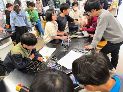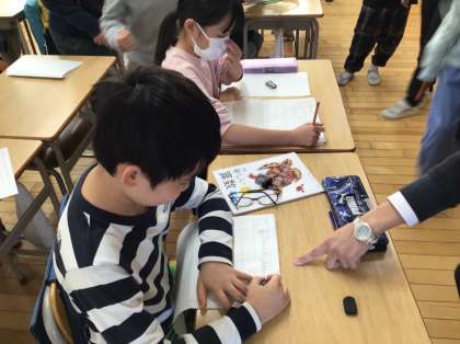 左の写真は、理科の『もののあたたまり方』という単元で、水のあたたまり方について実験をしている模様です。右の写真は、2月の総合での発表会に向け、準備を進めているところです。