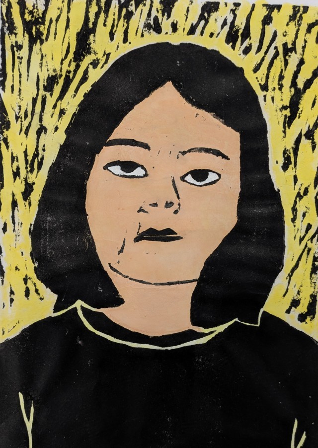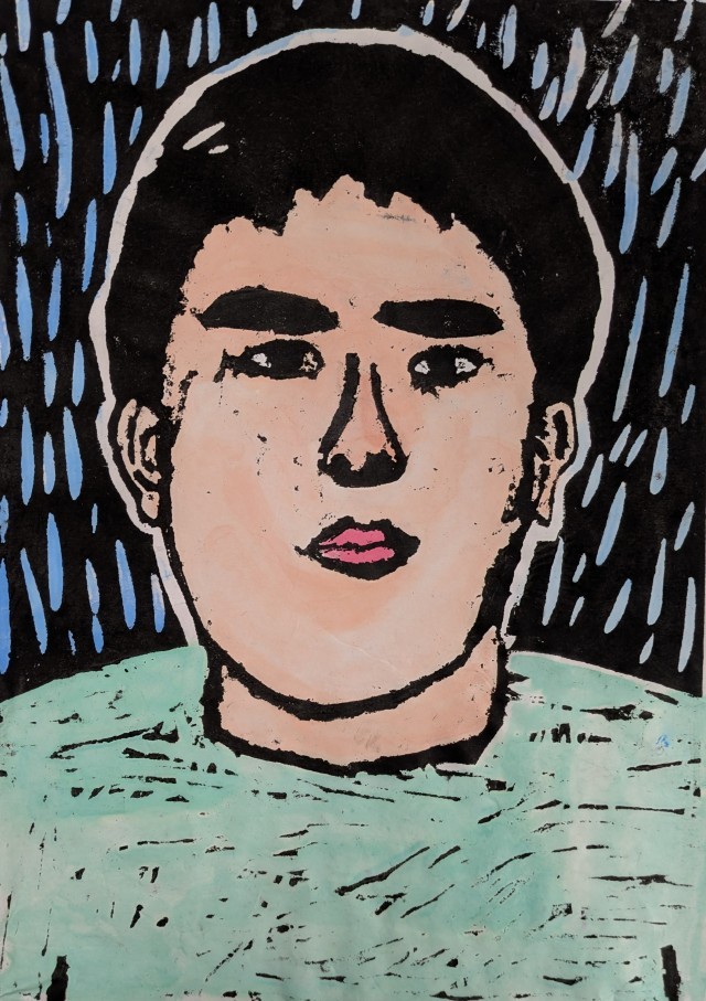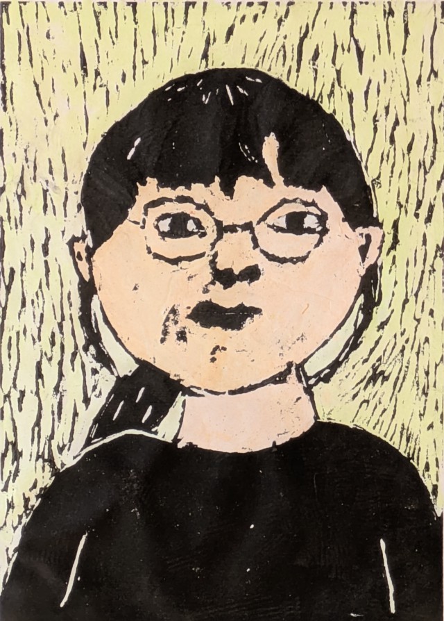 4年生が図工授業で題材「木版画の自画像」を大変苦労しながらようやく仕上げました。子どもたちは自分自身と向き合いながら木版画を制作し、手彩色で色を塗り、味わい深い風合いのある作品になりました。保護者・地域の皆様、1階ギャラリーに展示していますので学校公開で来校された際にはぜひご覧になってください。