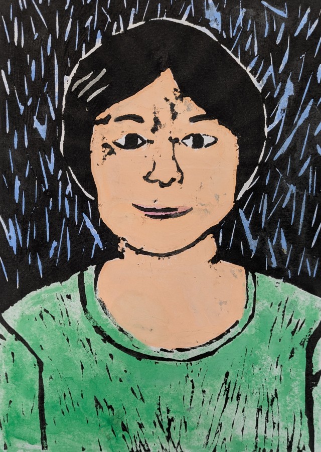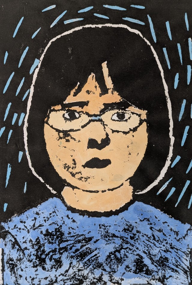 4年生が図工授業で題材「木版画の自画像」を大変苦労しながらようやく仕上げました。子どもたちは自分自身と向き合いながら木版画を制作し、手彩色で色を塗り、味わい深い風合いのある作品になりました。保護者・地域の皆様、1階ギャラリーに展示していますので学校公開で来校された際にはぜひご覧になってください。