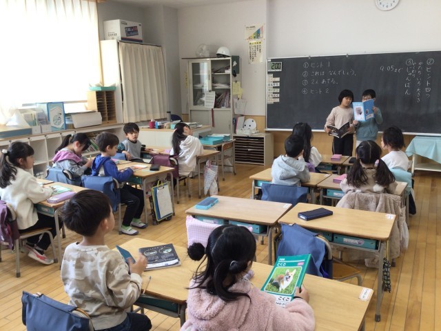国語科の学習で、学校の中にあるものをクイズにして、クラスの友達に出題しました!ヒントの内容や出す順番を工夫して、大盛り上がりでした!