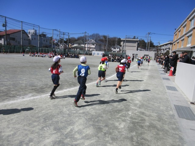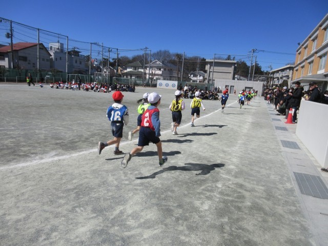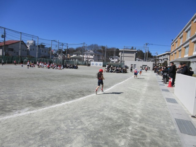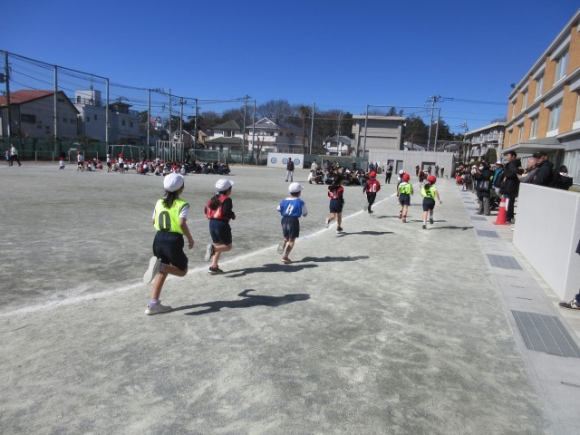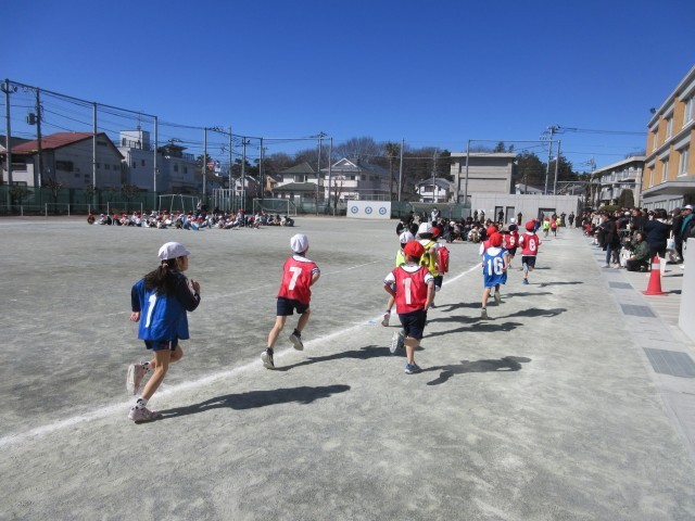 2月20日、早春の晴れ渡る空の下、持久走大会を行いました。1年生の子どもたちにとっては初めての体験、6年生がタイムを計測し見守る中、各々が決めた目標タイムに向けて頑張って走りきりました。参観していただいた保護者の皆様、ご声援ありがとうございました。