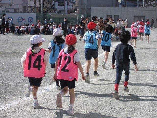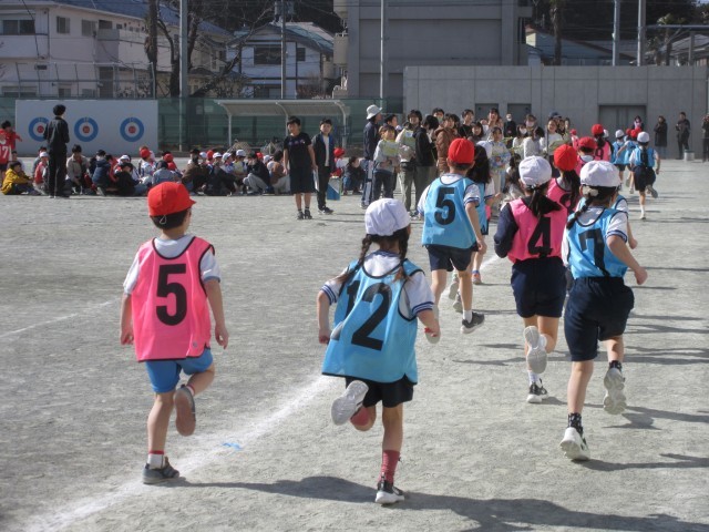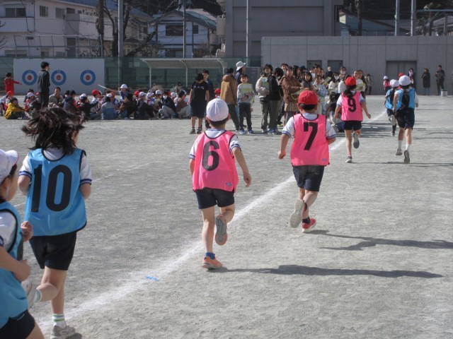 2月20日、早春の晴れ渡る空の下、持久走大会を行いました。2年生の子どもたちにとっては2回目、5年生がタイムを計測し見守る中、各々が決めた目標タイムに向けて頑張って走りきりました。参観していただいた保護者の皆様、ご声援ありがとうございました。