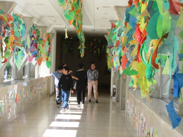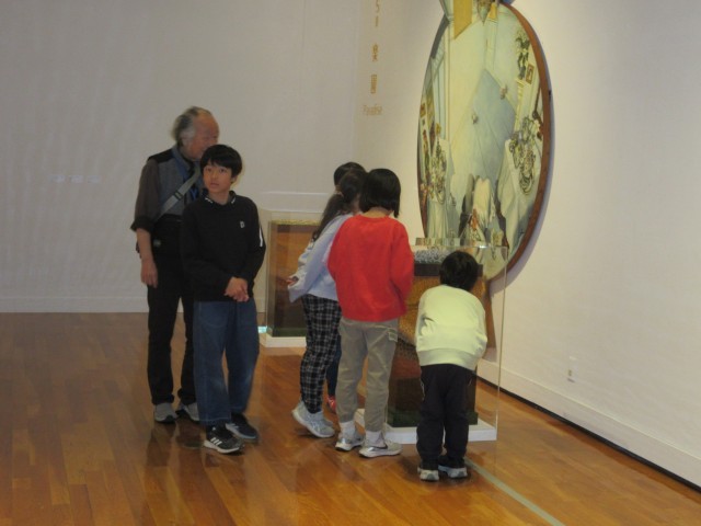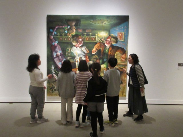 3月7日、美術鑑賞教室を実施しました。4年生が世田谷美術館へ出かけ「緑の惑星 セタビの森の植物たち」展、2階の常設展示室の「1980年代のイギリス美術」を鑑賞しました。子供たちが昨年制作した「植物の弦」の作品群が最後の展示室に飾られていました。城山小学校の作品は部屋の中央にあり自分の作品を探しながら見上げていました。最後は鑑賞リーダーの方たちに大きな声で感謝の挨拶をして学校へ戻りました。