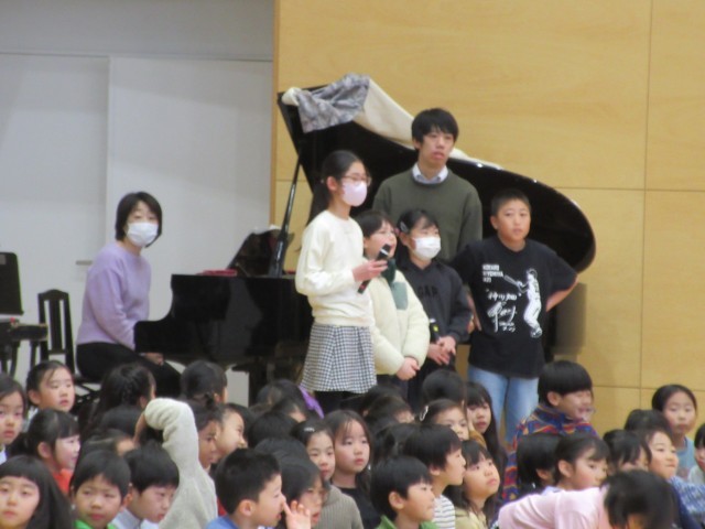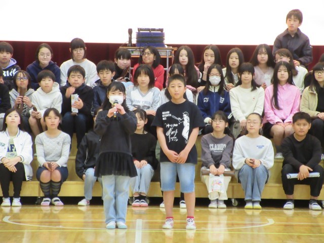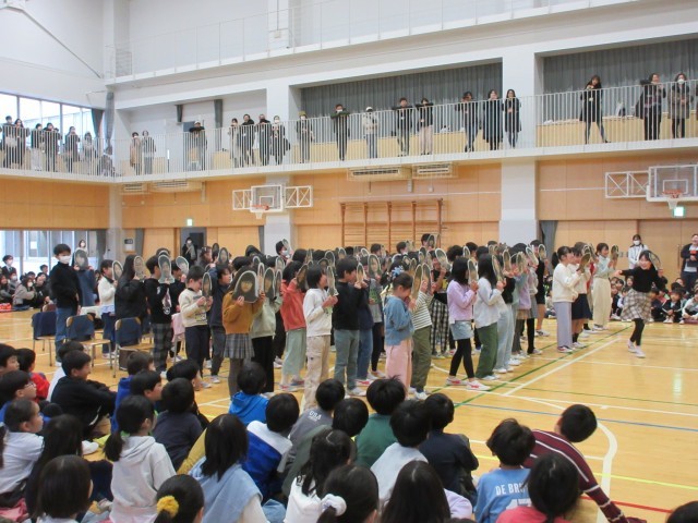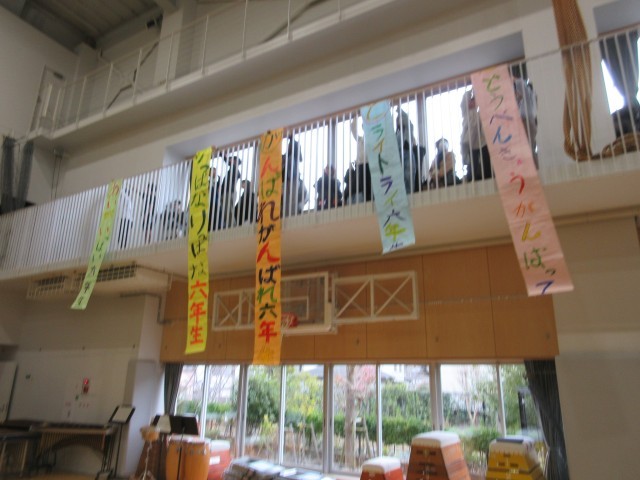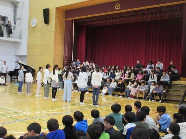 3月8日、6年生を送る会を実施しました。プログラムは、はじめの言葉、校長先生の話、各学年の出し物、言葉の交換、メッセージカード渡し、6年生からの贈り物と演奏、終わりの言葉…盛りだくさんの内容で6年生の卒業を全校で祝い、在校生も大いに楽しみました。卒業式まで残り11日、一日一日を大切に過ごしてほしいです。