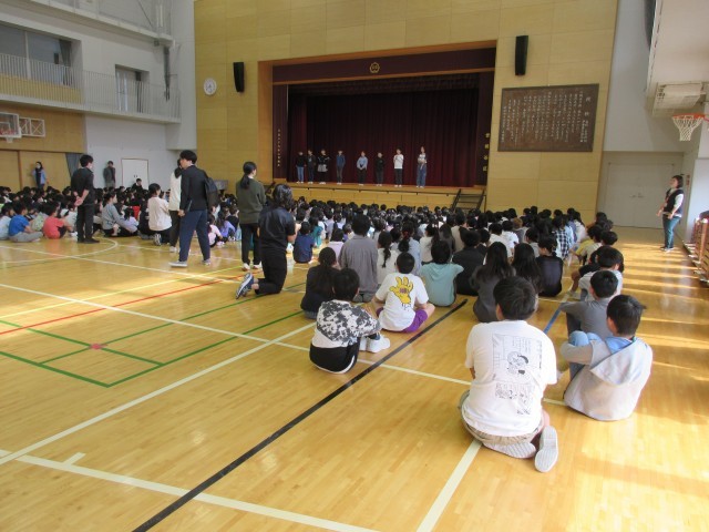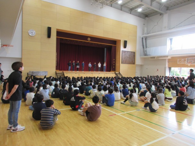 4月18日、朝の活動時間に児童集会(委員長紹介)を行いました。前期の運営代表・環境・保健給食・集会・体育・図書・広報・放送の委員長になった6年生が各委員会の活動内容やメンバーを紹介しました。皆、しっかりと発表することができました。