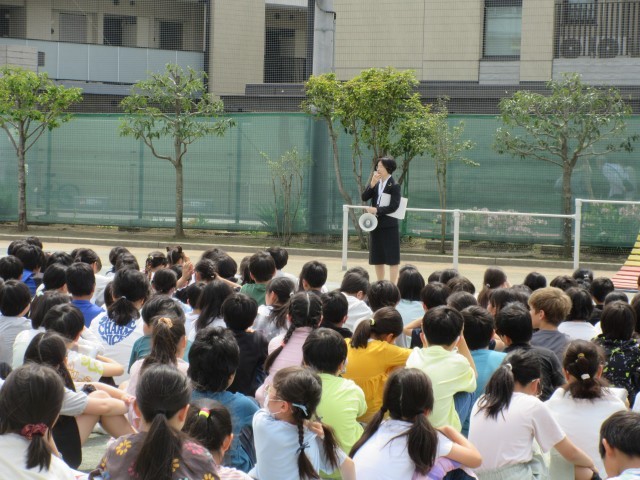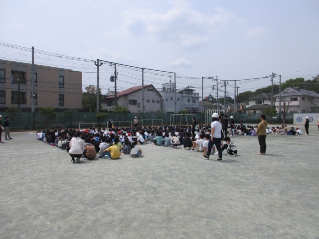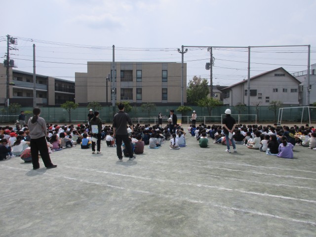 4月18日、今年度初めての避難訓練を実施しました。火災を想定した訓練でしたが子どもたちは「お・か・し・も」の約束を守り、静かにスムーズに校庭に避難して集合することができました。1年生は2~6年生の動きを見て学習するために参加しました。次回からは全学年そろって訓練します。
