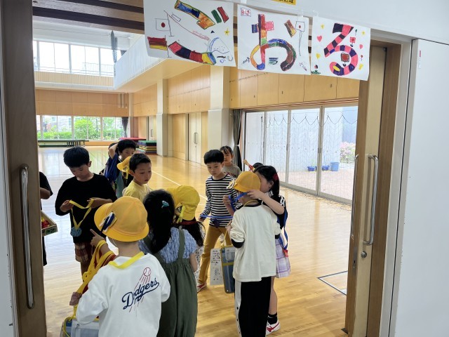 4月25日(金)に、がっこうたんけんを行いました。2年生から1年生へ、城山小がっこうたんけん挑戦状を渡し、1年生は自分たちで探検に出発しました。2年生は、案内係や部屋係に分かれて1年生に道を案内したり、部屋の説明をしたりしました。ゴールでは、2年生からメダルのプレゼントもありました。そのあとは、短い時間でしたがともあそび班で遊びました。2学年とも楽しい時間を過ごすことができました。