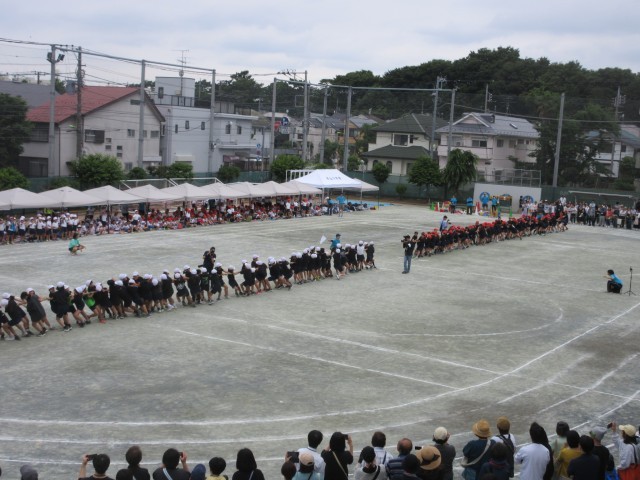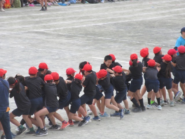 最後は全校種目「みんなで綱引き」、低・中・高の2学年ずつで協力しながら綱引きに挑みました。どの学年も最後の種目ということもあり精一杯競技に打ち込み、応援席から声を張り上げて声援を送る様子が素敵でした。