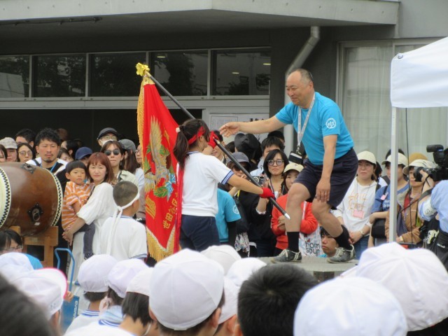 閉会式では、得点発表・応援団長への優勝旗授与・準優勝杯授与・校長先生の話・おわりの言葉・校歌斉唱などがありました。結果は赤組の優勝となりましたが、全学年の子どもたちが練習の段階からよく頑張って取り組んできました。皆が協力し合い、心をつなぐことができた素晴らしい運動会でした。保護者・地域の皆様、子どもたちへの熱い声援をありがとうございました。